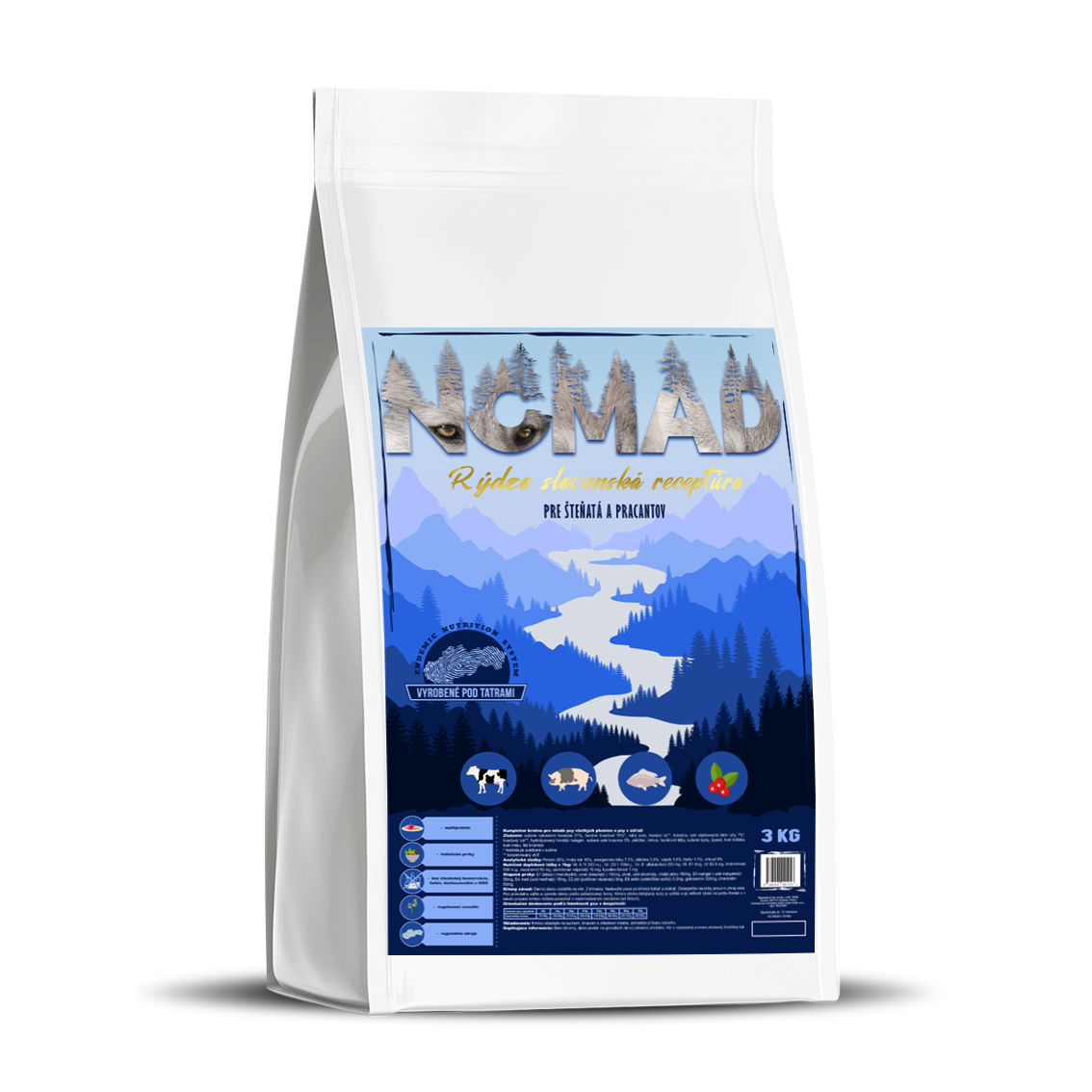 NOMAD je izuzetna hrana s izvornim slovačkim receptom, poštujući prirodne instinkte pasa, ali i put psa, koji je prošao u desecima tisuća godina života pored čovjeka. Proizvode se u malom obiteljskom poduzeću, pod licencom slovačkog prehrambenog sustava –  receptima Endemic Nutrition System.