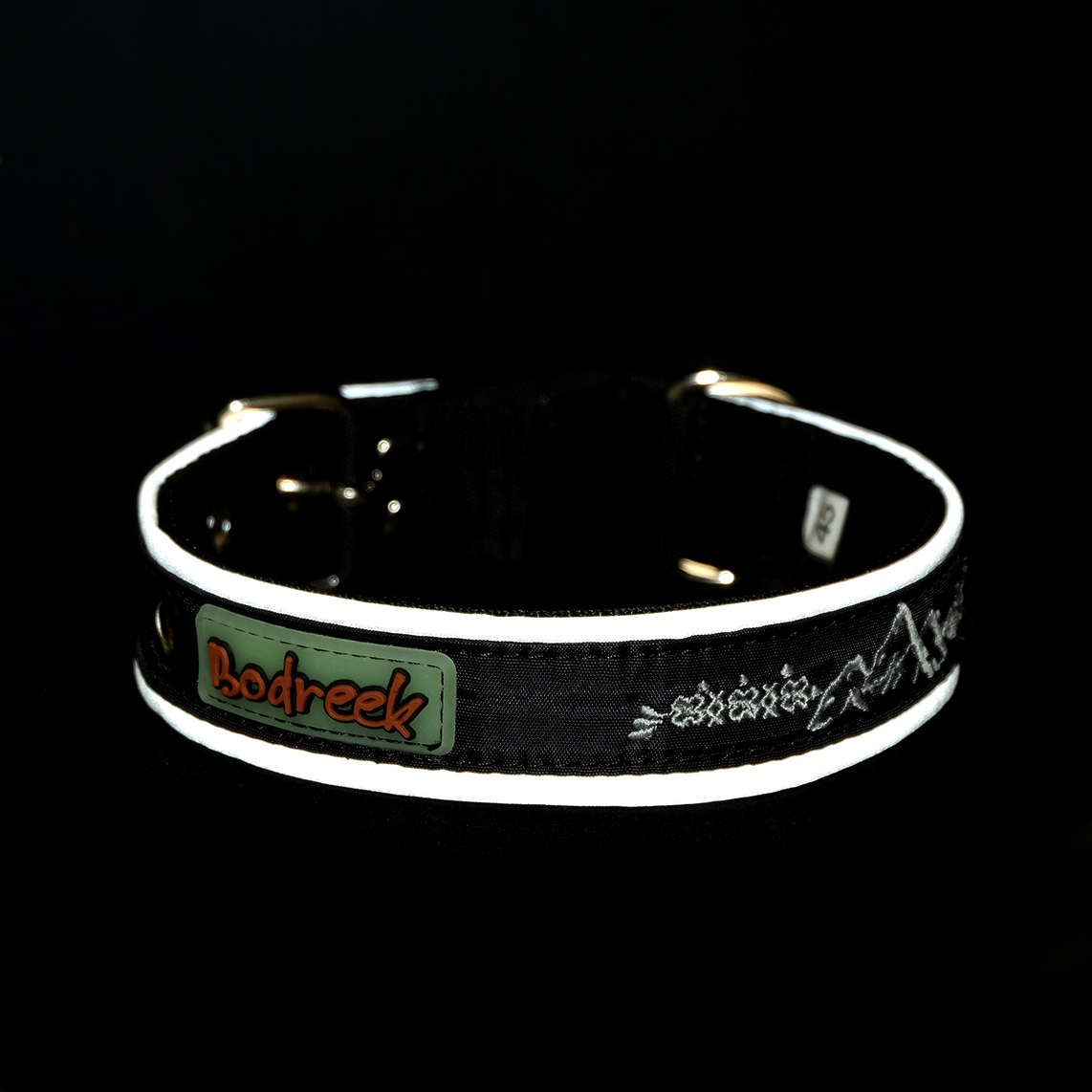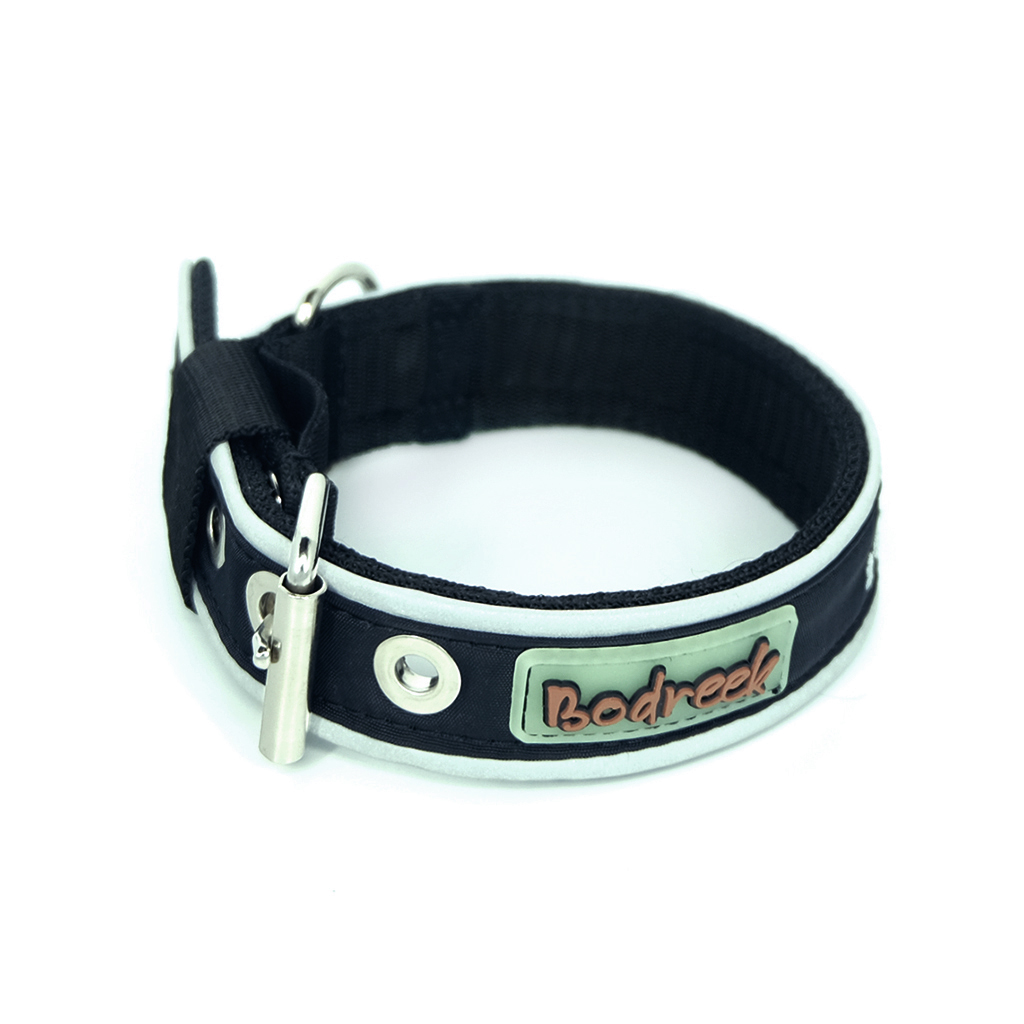 Bodreek ovratnici dizajnirani su i izrađeni u Slovačkoj, od jakih i izdržljivih materijala. Pouzdanost osiguravaju četiri međusobno prošivena sloja tkanina, svaki s različitim svojstvima, koji su dodatno ušiveni reflektirajućim rubom i nadopunjeni fosforescentnom aplikacijom. Površinski sloj je vodootporan i jednostavan za pranje. Kontaktna površina remena izrađena je od bezopasnog polipropilenskog vlakna, koje se također koristi u prehrambenoj industriji ili za proizvodnju kirurških šavova, otpornih na organska otapala, ulja i alkohole. Materijal je otporan na vlagu i znoj, neelastičan je i ne uvija se. Remen može podnijeti teret veći od 300 kg. Izdržljiva kopča pričvršćena je na remen. Ovratnici Bodreek ukrašeni su prekrasnim vezom.